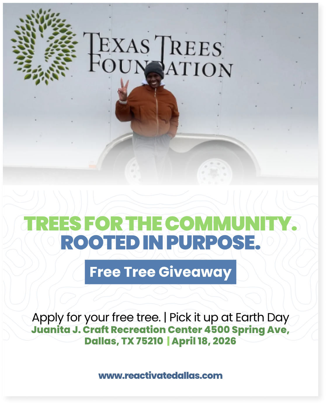 Thanks to our partners at The Texas Trees Foundation, 1,000 FREE trees are being given away to residents in the South Dallas Greening Initiative area.